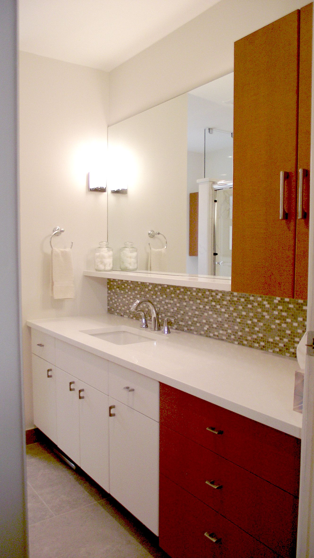 Recent Projects: White Shaker Bevel Vanities & Toilet Cabinets. Bedroom Storage and TV Mount with LED Lighting